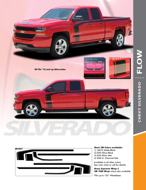 Chevy Silverado Stripes Hood Door Vinyl Graphic Decal Flow 2016 2018